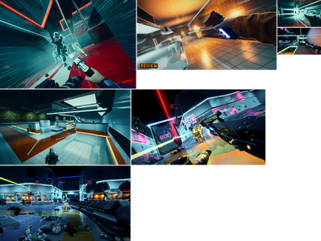 Super Hot and existing severed steel maps are featured in the moodboards below where I found that a clear colour language and leading lines in the form of neon strips were used heavily to guide the player and improve the overall depth perception of the level.